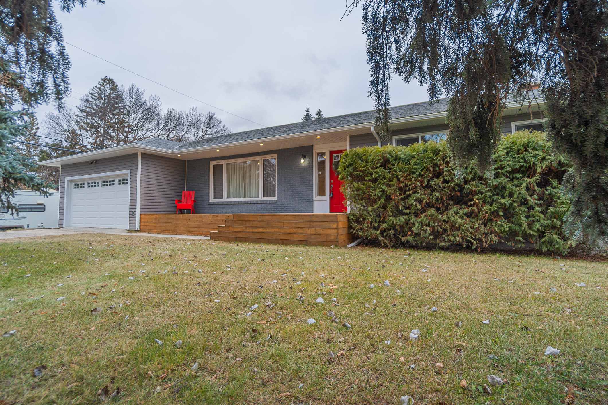 Tucked beneath a canopy of mature spruce trees, this beautifully renovated bungalow offers the kind of setting families dream about — spacious, private, and ready to move into before the next chapter begins. With over 1,400 sq.ft. of refreshed main-floor living, three comfortable bedrooms and 2.5 updated baths, the home is designed for ease, connection, and everyday living. The fully finished lower level adds even more room to spread out, featuring a cozy wood-burning fireplace perfect for movie nights, a hobby space with sink, a workshop/cold room, and an area already roughed in for a future bedroom and bathroom — ideal for teens, guests, or multi-generational living.